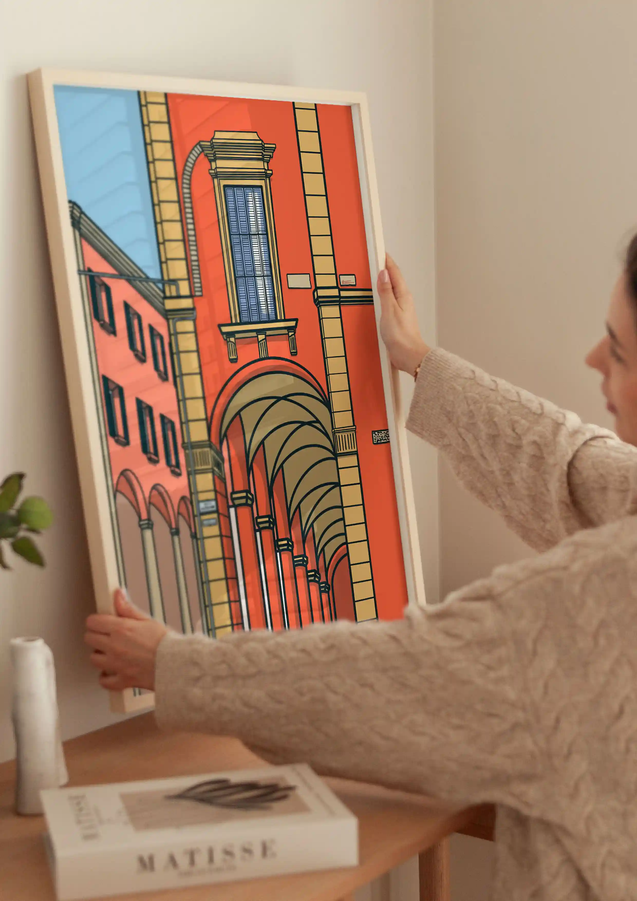 We were drawn to the geometry of the arches and the calm beauty of the scene, wanting to capture that quiet elegance in our lines and colors. It’s a visual memory of Bologna’s charm — simple, architectural, and full of soul.
